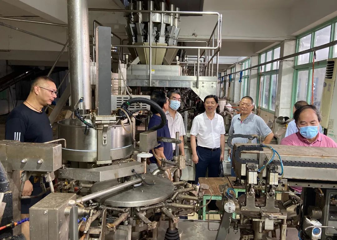 宁波铜钱桥食品菜业有限公司总工程师孙志栋带领与会专家参观榨菜加工生产线,详细介绍了切制、漂淡、脱水、拌料、称重计量、灌装、真空包装、杀菌等加工工序及加工设备。与会专家就榨菜生产工艺、生产质量管控、生产线设备配置等与企业技术人员进行了深入的沟通和交流。