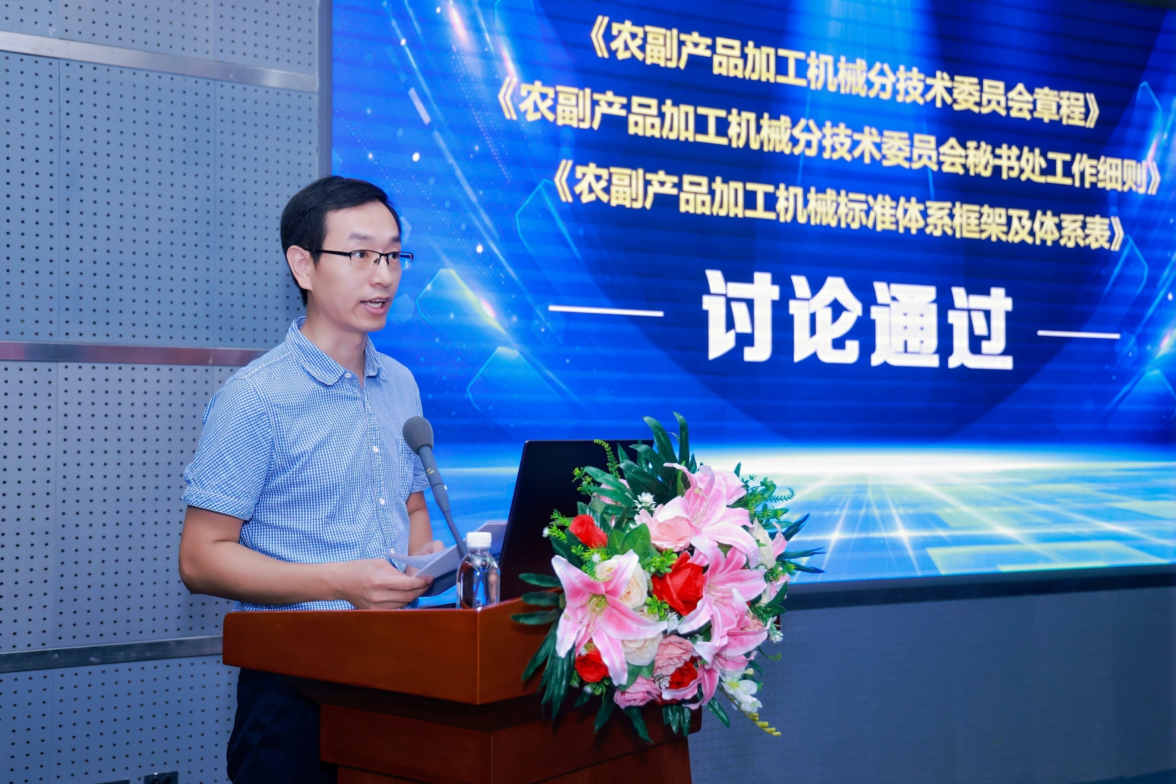 农副产品加工机械分技术委员会副秘书长、农业农村部规划设计研究院高级工程师朱广飞宣读《农副产品加工机械分技术委员会章程》《农副产品加工机械分技术委员会秘书处工作细则》《农副产品加工机械标准体系框架及体系表》,与会专家一致讨论通过。